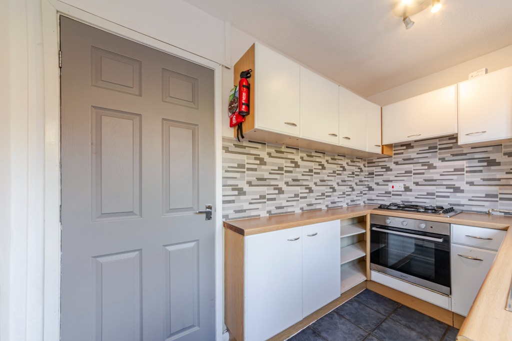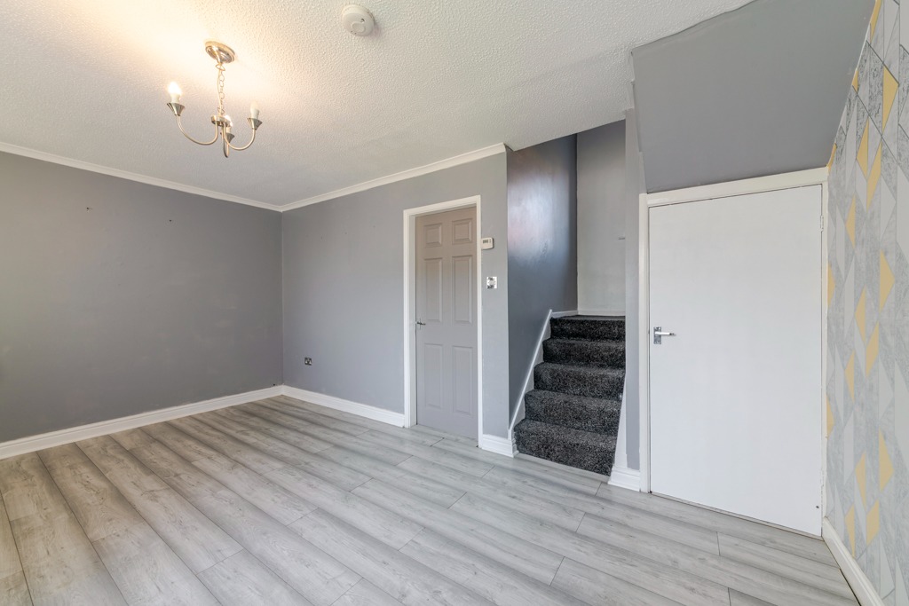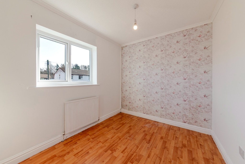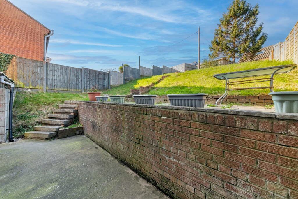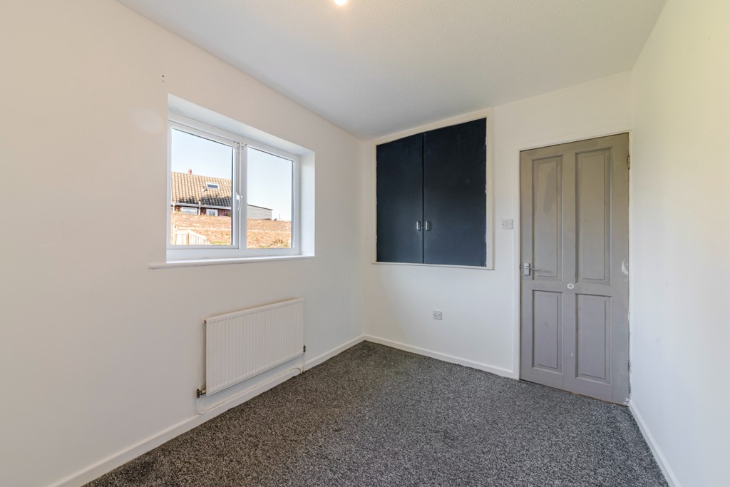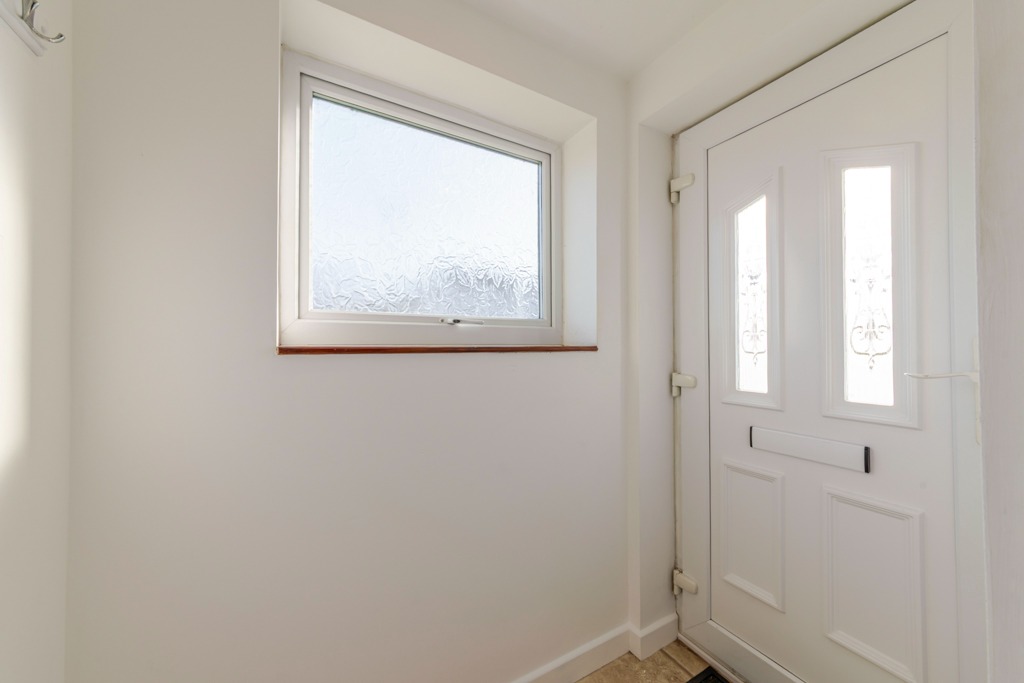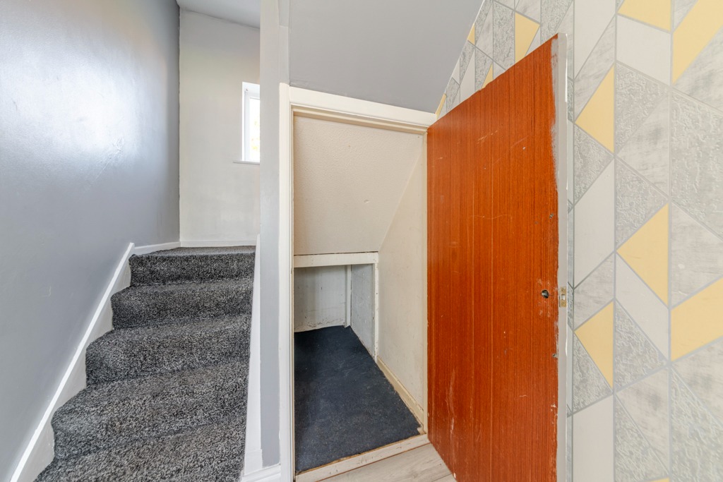 Upon arrival, a welcoming porchway leads into the home. The living room is cosy and offers practical understairs storage. The kitchen, while in need of updating over time, features a rear window overlooking the rear garden. A door opens directly to the garden, allowing for a pleasant connection to the outdoor space. The family bathroom includes a bath with an overhead shower, catering to everyday needs.