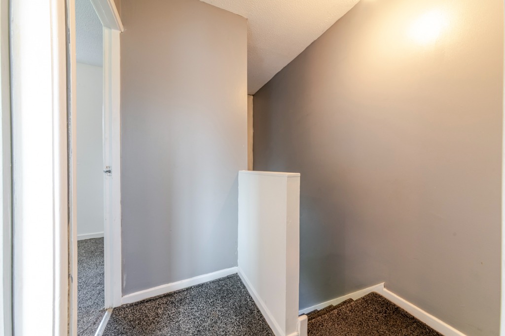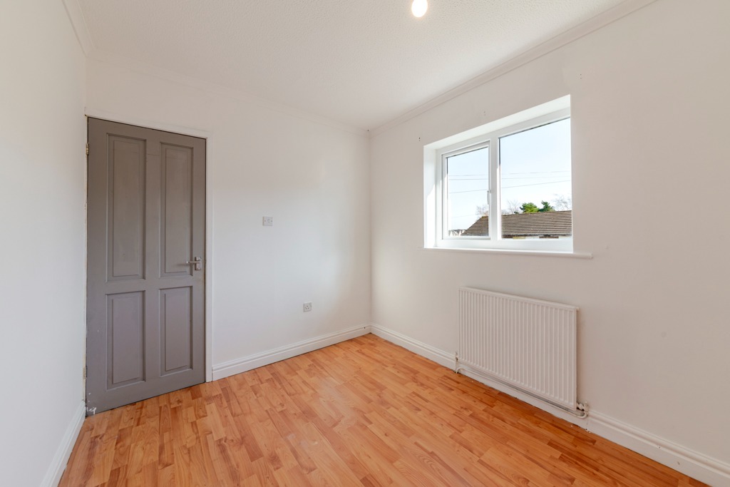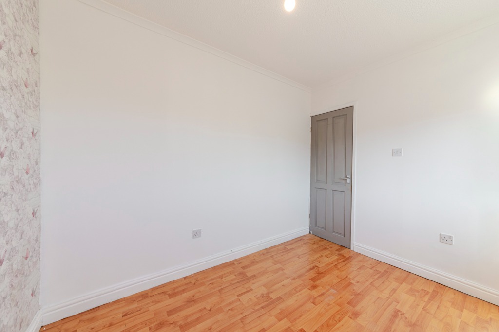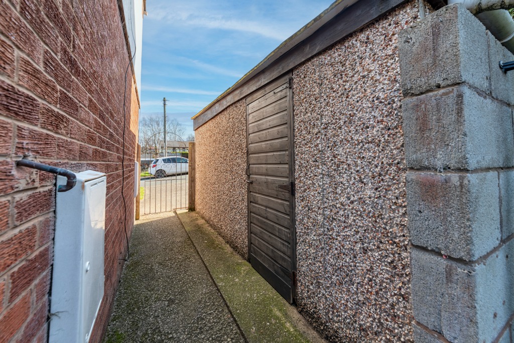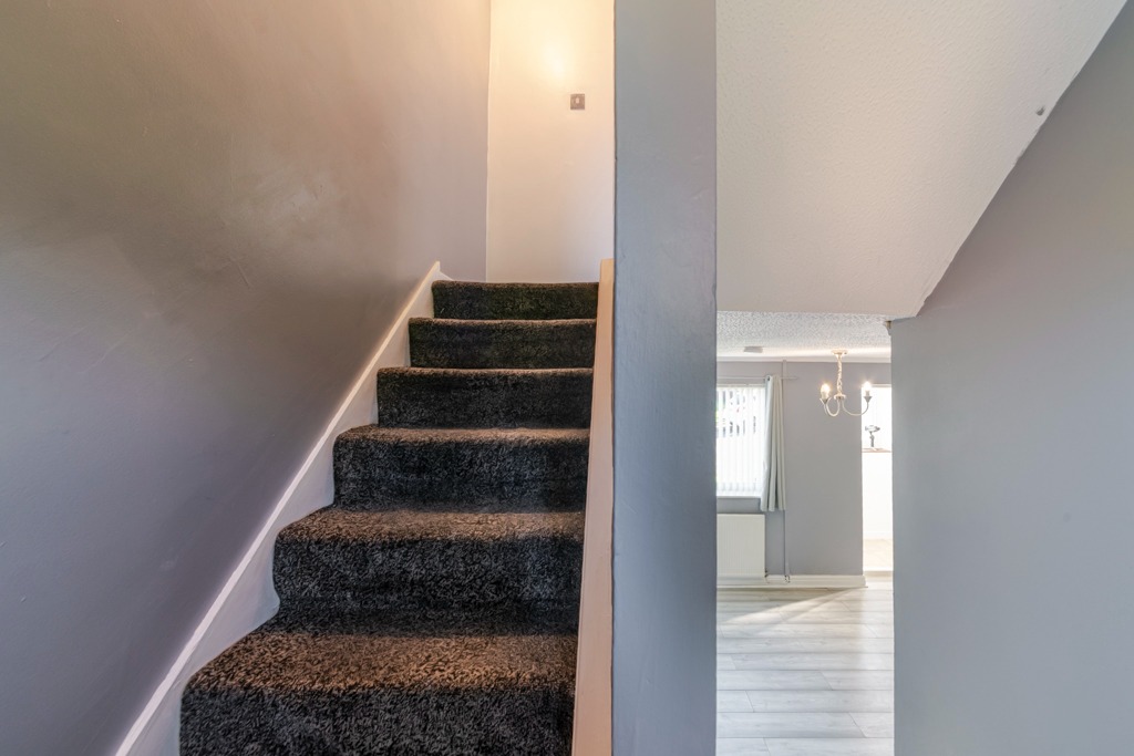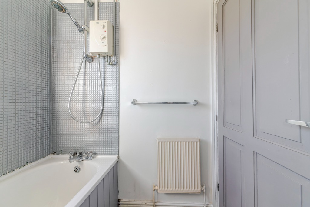 Upon arrival, a welcoming porchway leads into the home. The living room is cosy and offers practical understairs storage. The kitchen, while in need of updating over time, features a rear window overlooking the rear garden. A door opens directly to the garden, allowing for a pleasant connection to the outdoor space. The family bathroom includes a bath with an overhead shower, catering to everyday needs.