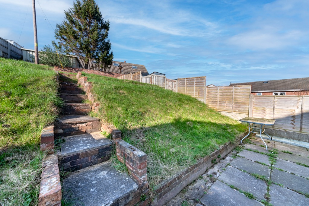 The rear garden offers considerable potential for landscaping and creating a private outdoor sanctuary. It features a patio area, a sloped lawn with stairs, and a flat grassed area that enjoys great views. Its generous proportions invite imaginative design, whether for entertaining, gardening, or simply enjoying the fresh air. The location is particularly appealing for families, being within walking distance of local schools and essential amenities, fostering a sense of community and convenience. This house represents a distinctive chance to acquire a well-positioned property and transform it into a truly bespoke living space.