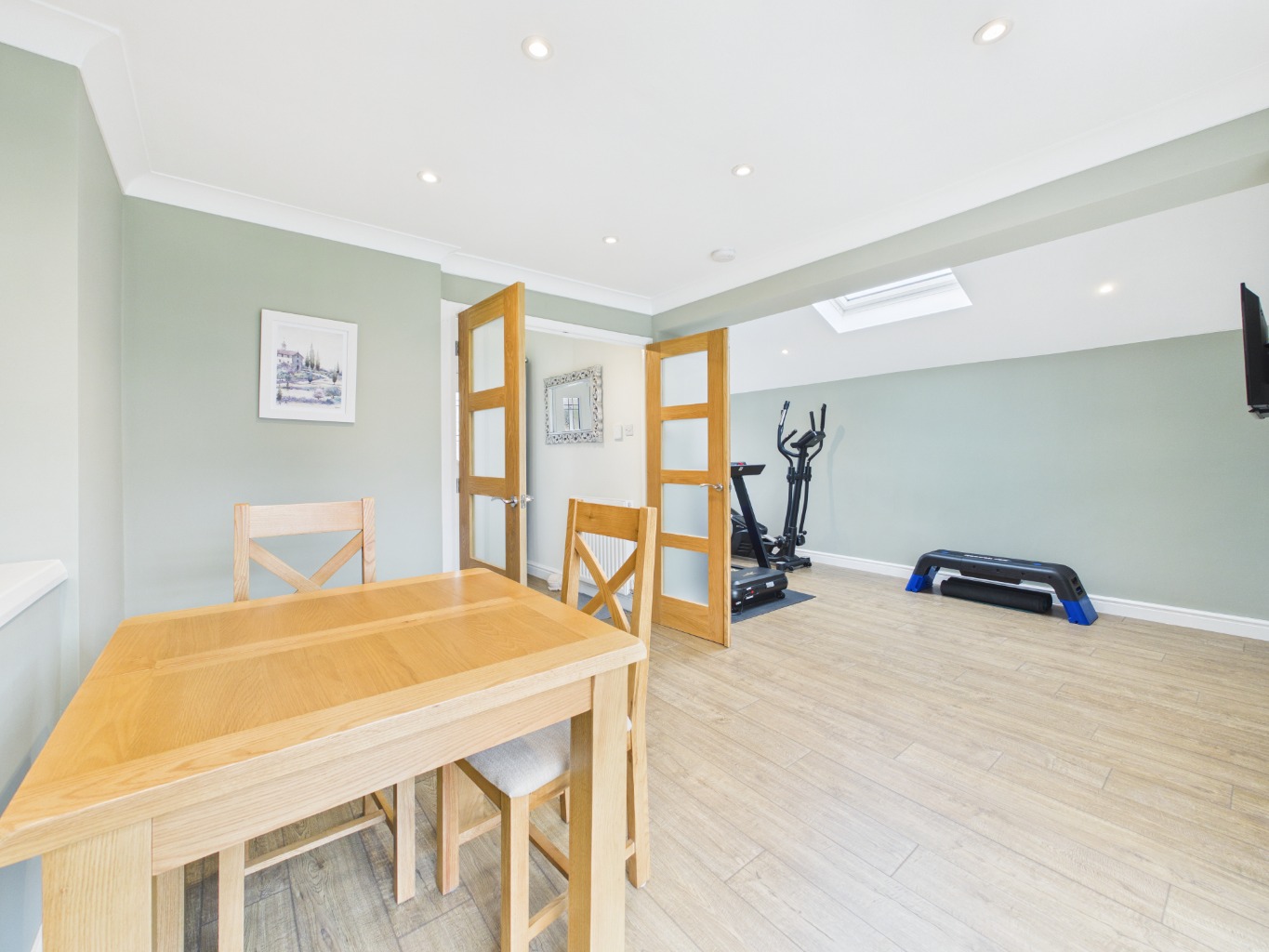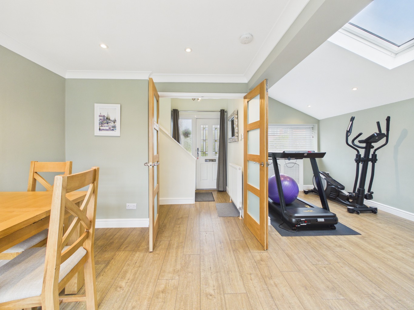 Upon entering, you are welcomed into a bright entrance hall that sets the tone for the rest of the home. Straight ahead, double doors open into an impressive reception space, flooded with natural light from expansive floor-to-ceiling windows that frame views over the garden. This versatile room flows effortlessly into the rest of the living accommodation, creating a sense of openness and connection throughout.