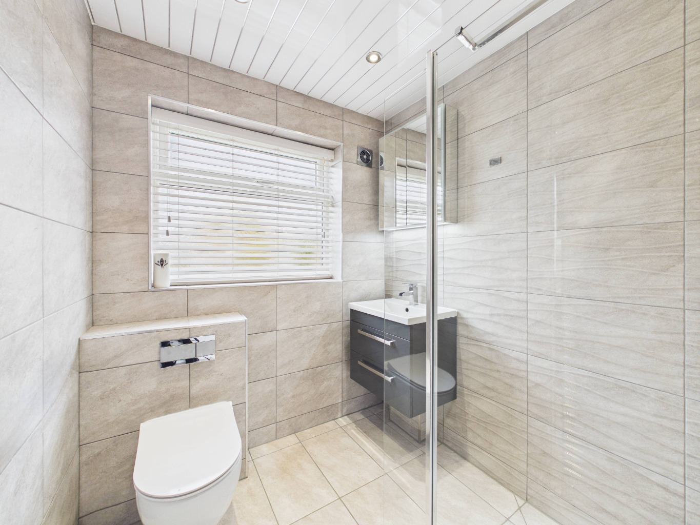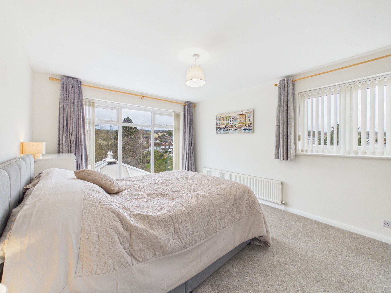 The bedrooms are well-proportioned and filled with natural light, including a standout principal bedroom featuring floor-to-ceiling windows overlooking the rear garden. The remaining bedrooms are equally versatile, while the family bathroom is beautifully presented with a contemporary walk-in shower.