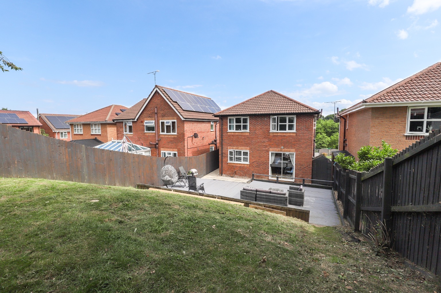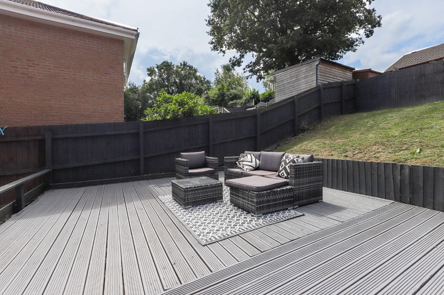 Externally, the property truly excels with its large garden. This outdoor space has been thoughtfully designed to offer multiple areas for enjoyment and relaxation. The garden features a well-maintained sloped lawn, providing a green expanse perfect for children's play or simply enjoying the outdoors. Complementing the lawn is a substantial decking area, an ideal spot for al fresco dining, summer barbecues, or simply unwinding with a book.