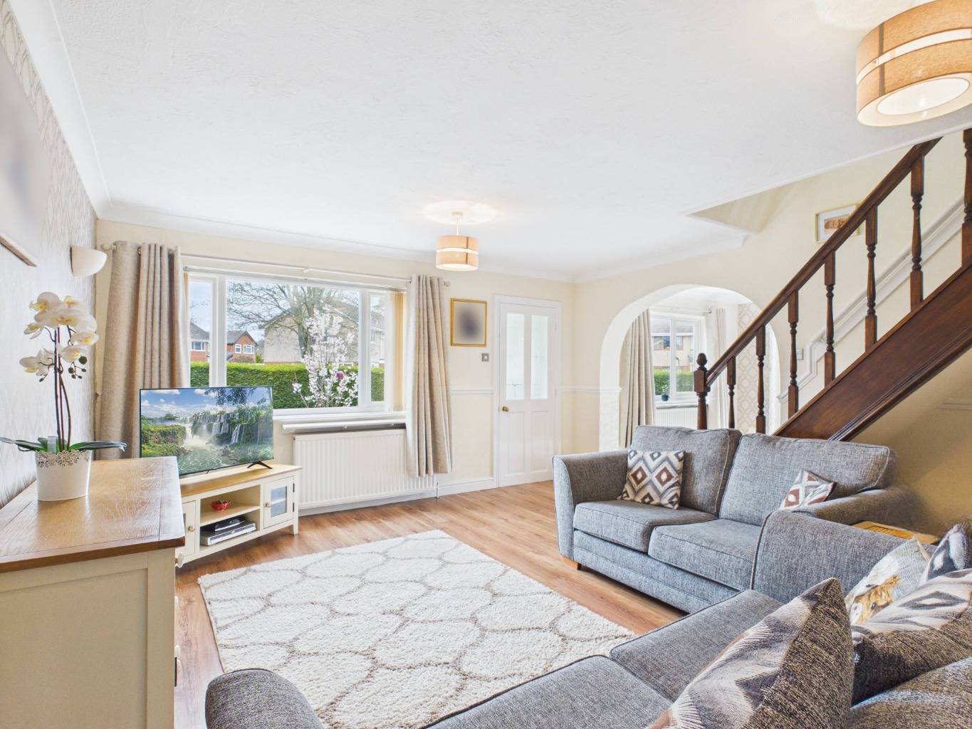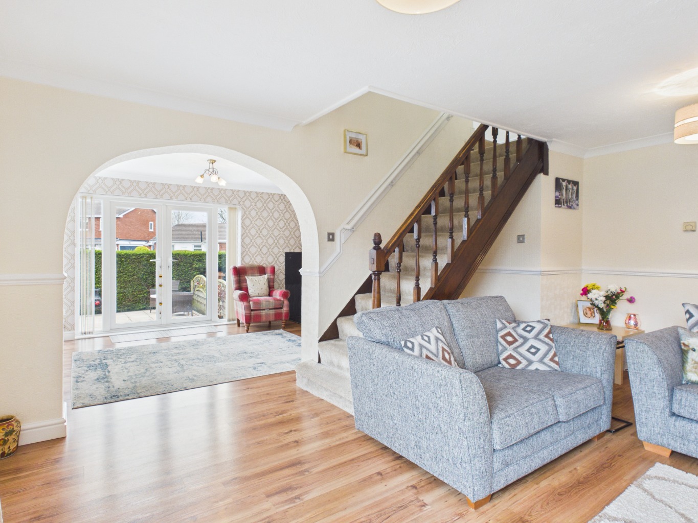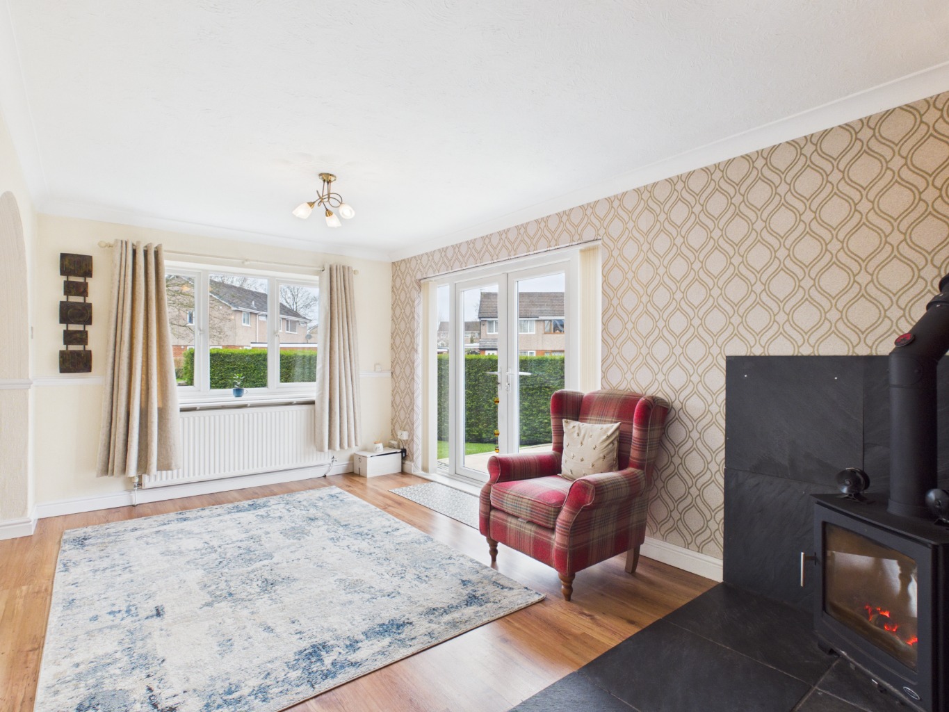 Upon entering through the porchway, you are welcomed into a central hallway with the staircase positioned directly ahead. To the right, a comfortable main lounge provides a bright and inviting space to relax. To the left, a second reception room offers fantastic versatility, featuring a charming log burner and perfectly suited as a snug or dining room, with a natural flow leading through to the kitchen.