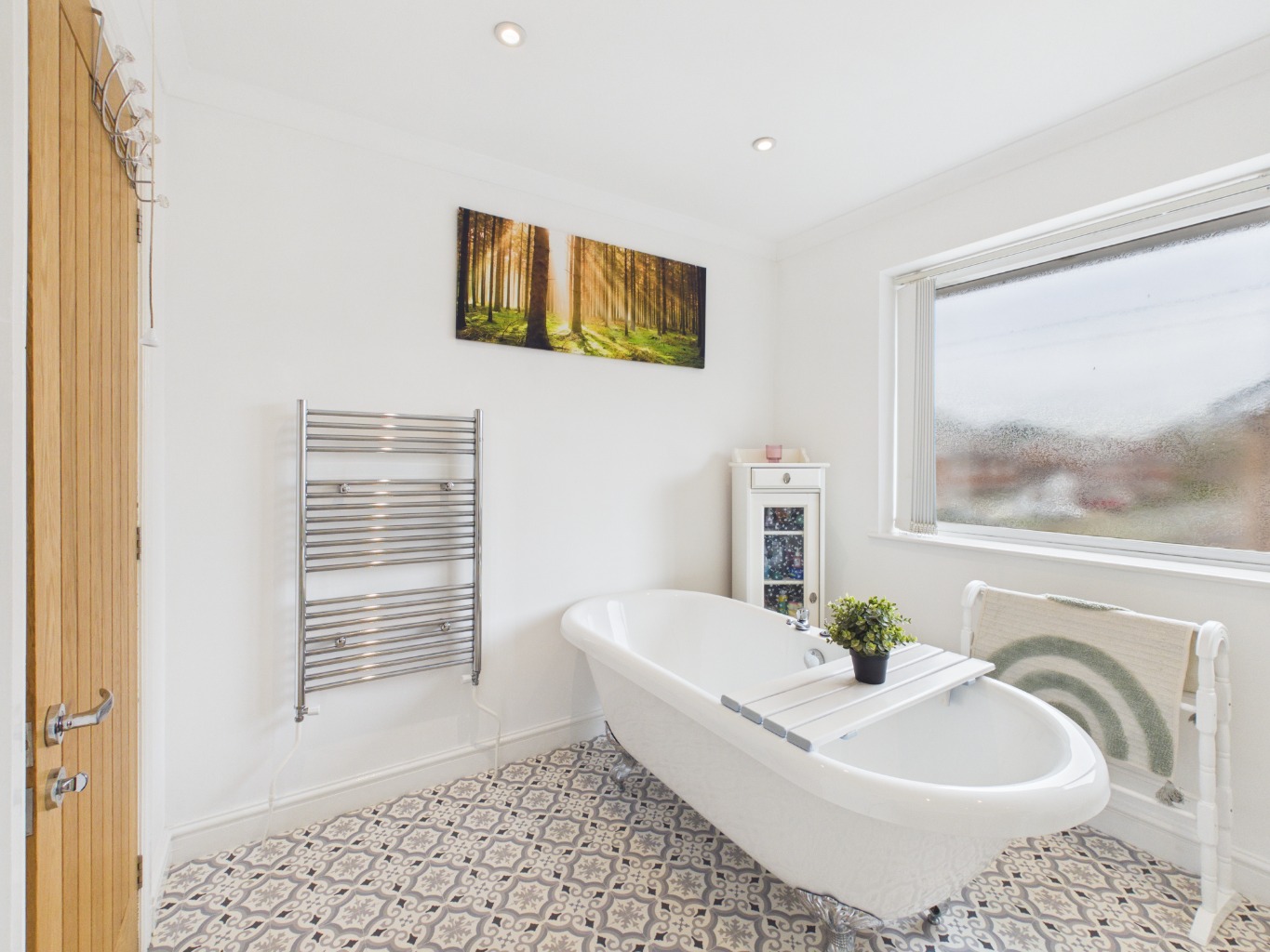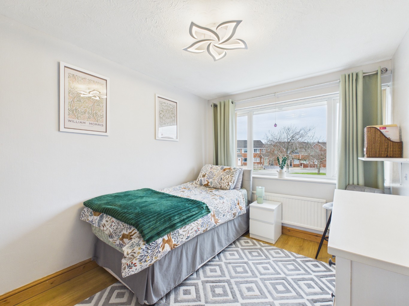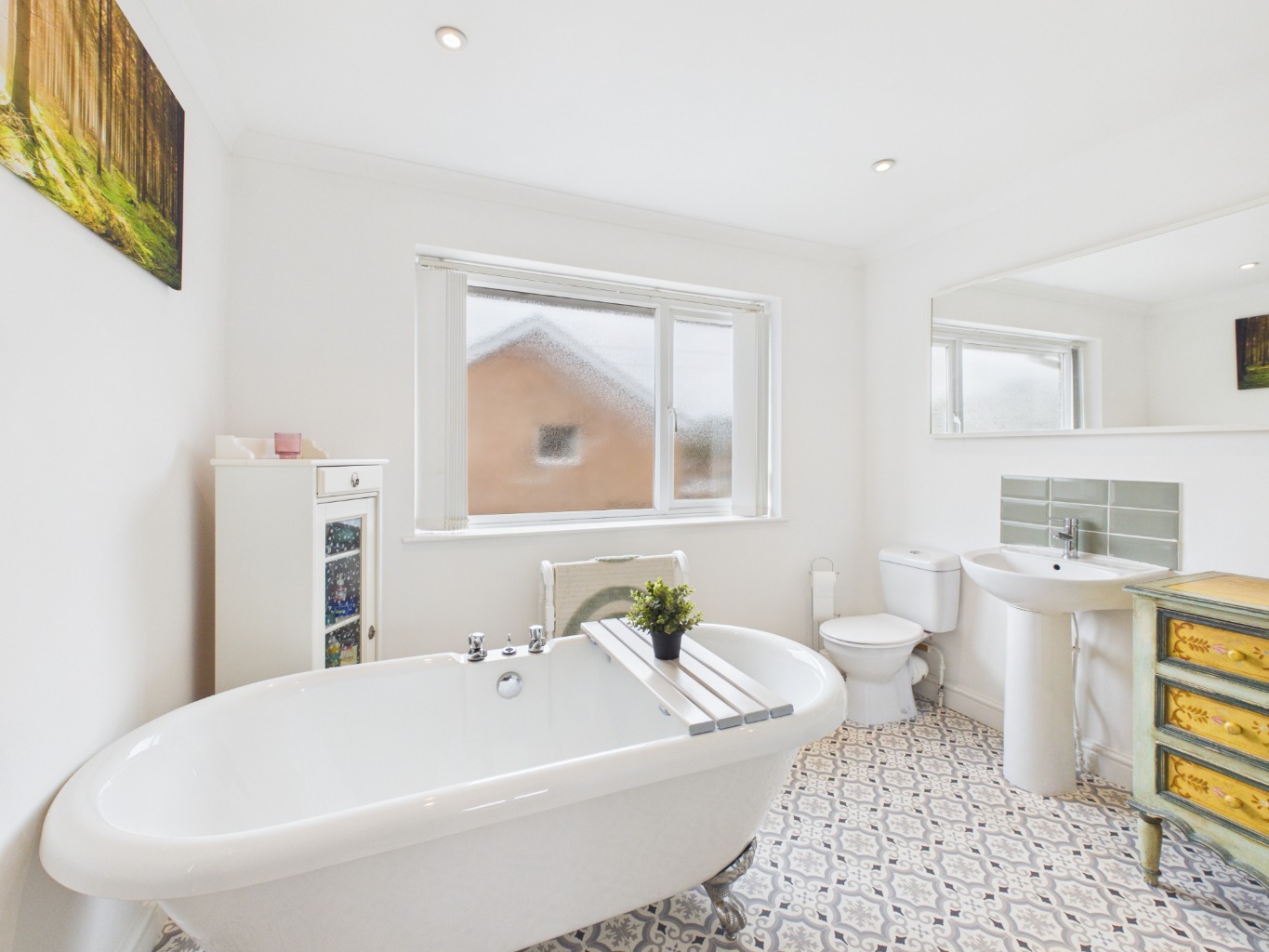 Upstairs, the layout continues to impress, with the landing splitting to both the left and right. To the left, the spacious master bedroom is filled with natural light from two windows and benefits from a stylish en-suite featuring a freestanding bath, creating a peaceful retreat. To the right, a family shower room serves the remaining bedrooms, which include two well-proportioned double bedrooms and a small single bedroom/nursery.