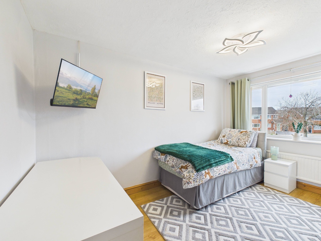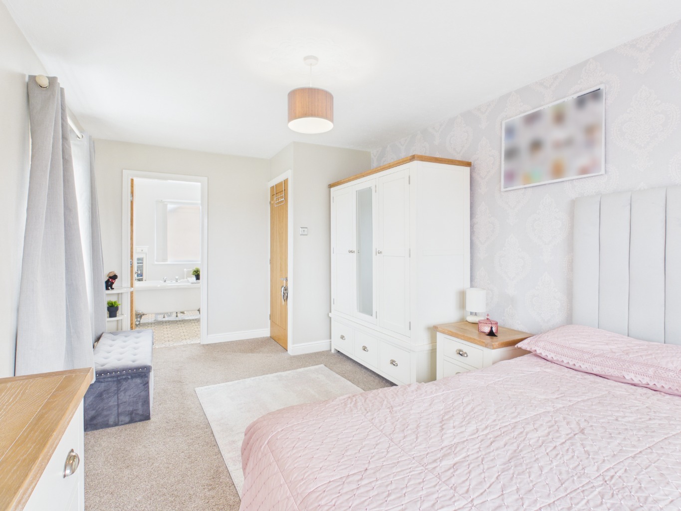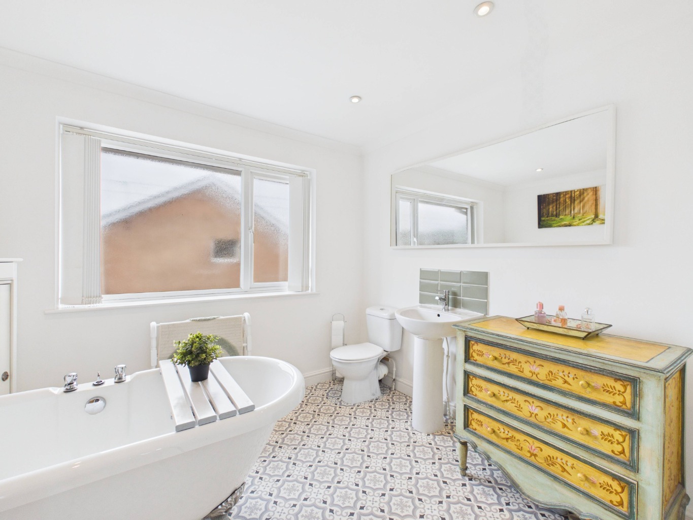 Upstairs, the layout continues to impress, with the landing splitting to both the left and right. To the left, the spacious master bedroom is filled with natural light from two windows and benefits from a stylish en-suite featuring a freestanding bath, creating a peaceful retreat. To the right, a family shower room serves the remaining bedrooms, which include two well-proportioned double bedrooms and a small single bedroom/nursery.