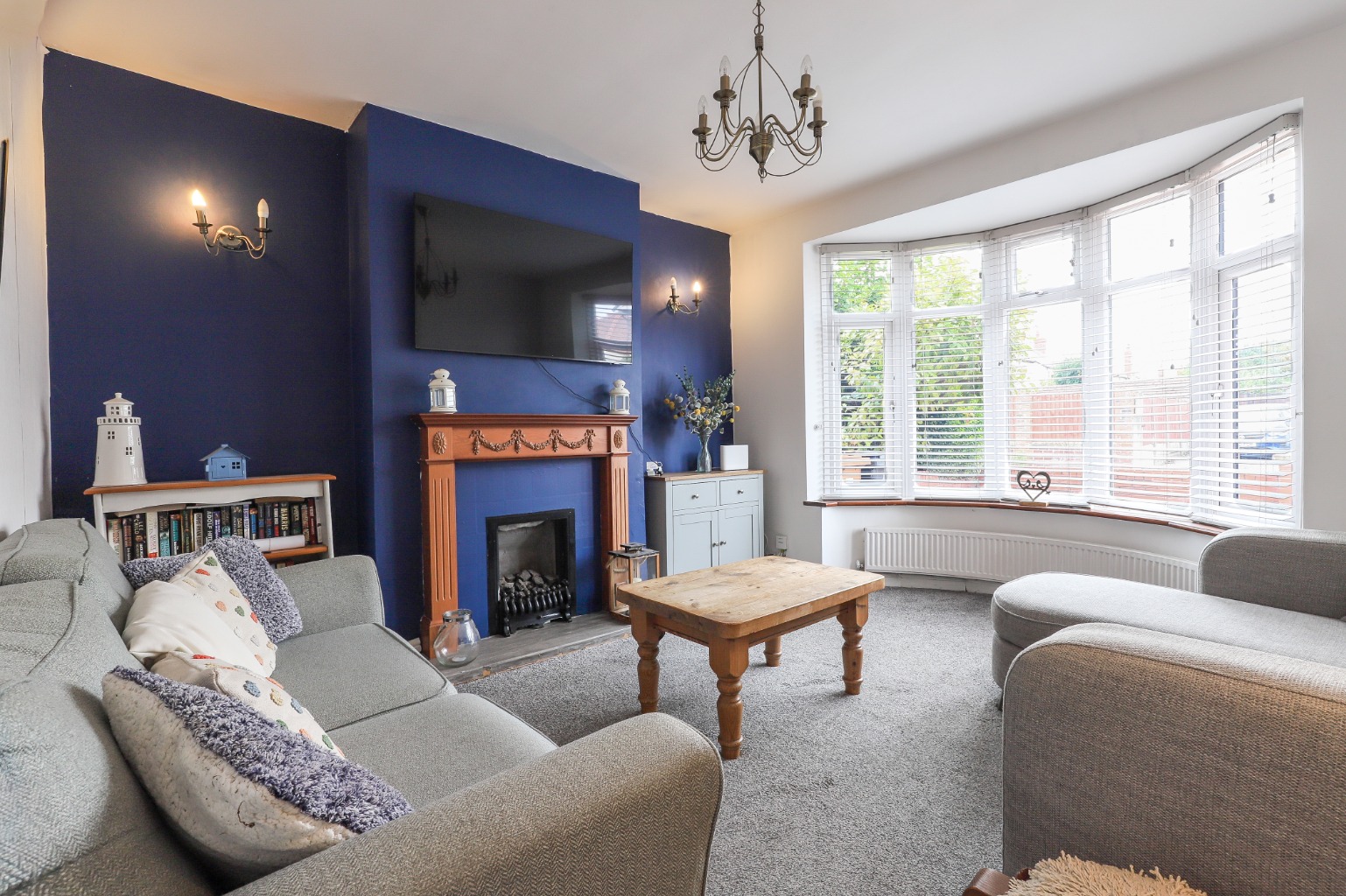 The spacious living room serves as the heart of the home, where an elegant bay window bathes the space in natural light, creating a bright and airy feel. A characterful feature fireplace adds both warmth and personality — the perfect setting for cosy evenings with family and friends.