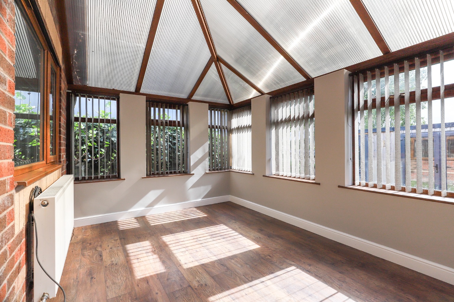 The conservatory, accessed via the third bedroom, benefits from heating, making it a versatile space to enjoy year-round as a dining area, sunroom or quiet reading nook, while offering a wonderful connection to the outdoors.