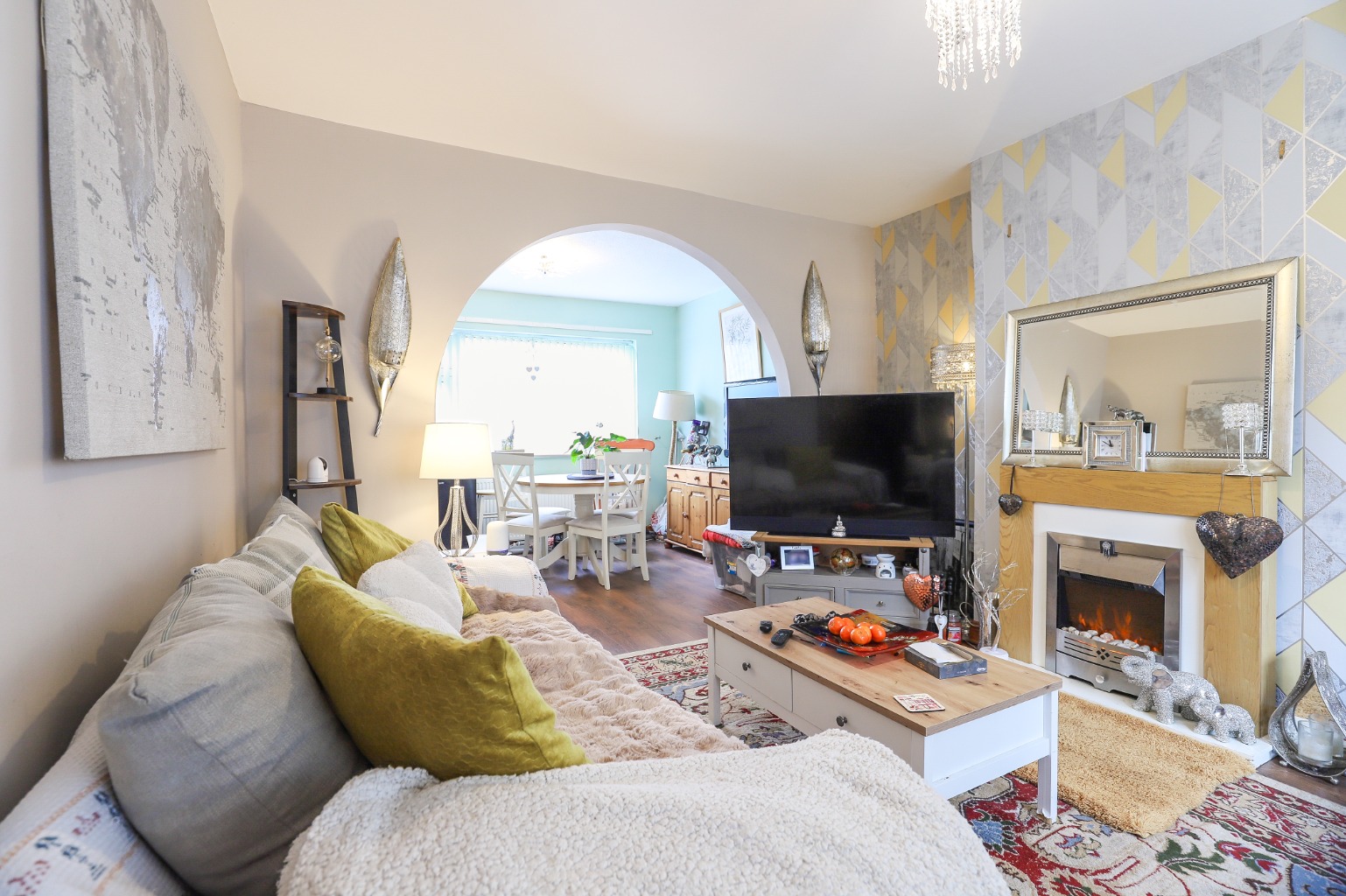 Upon entering you are greeted by a bright hallway that leads into the heart of the home. The ground floor features a spacious, dual-aspect living area, complete with an electric fire, designed to foster a seamless flow for everyday life and entertaining. An archway connects this space to the open-plan kitchen and dining area, creating a social hub. There is also clear potential to extend the kitchen and dining area to the rear, subject to approved regulations, allowing for an even more expansive and contemporary family space.