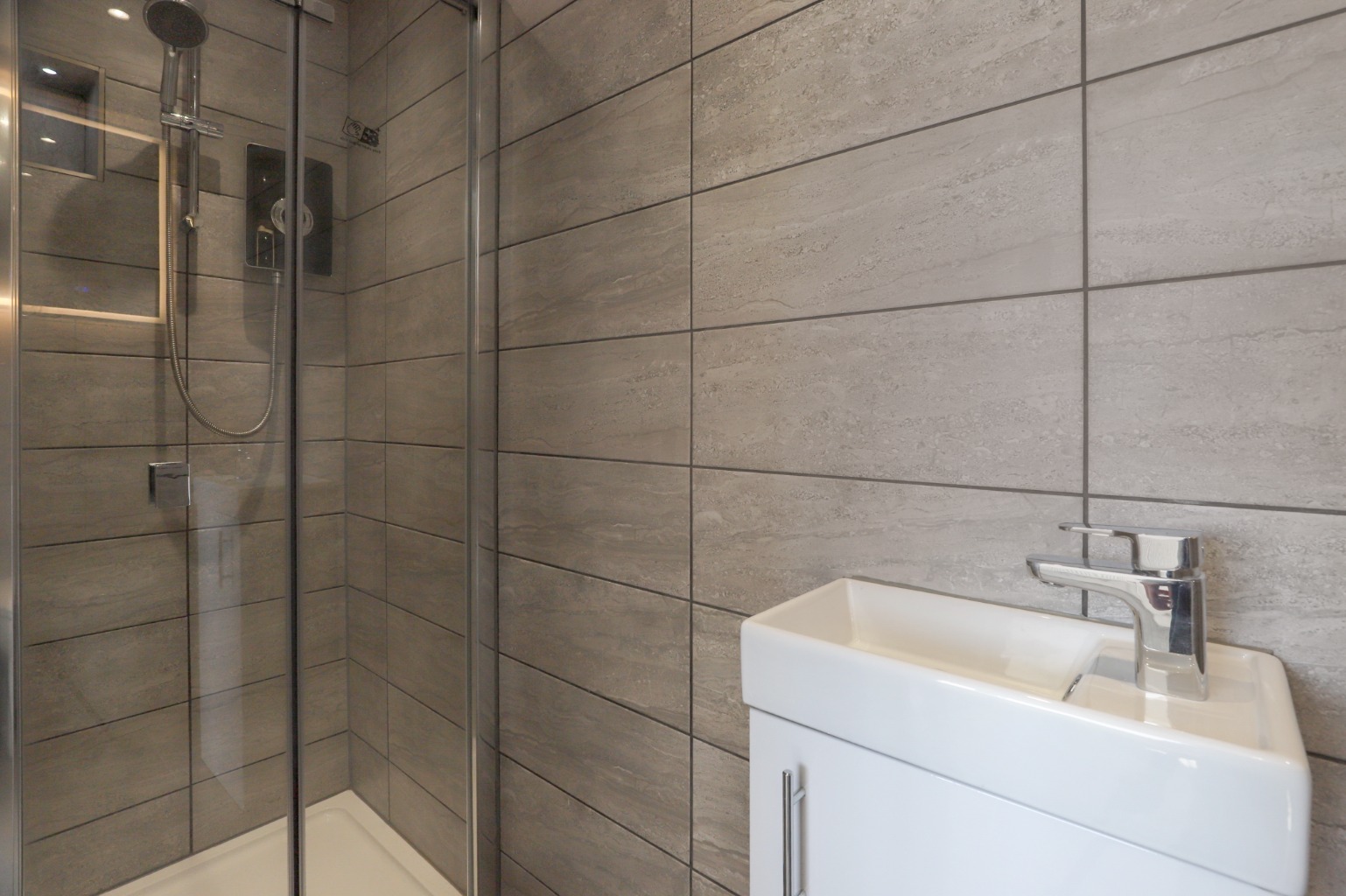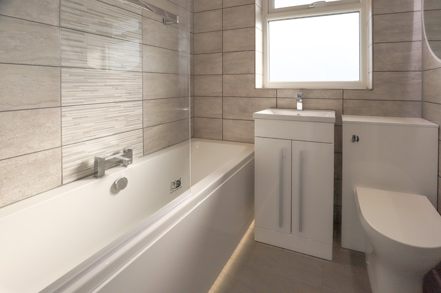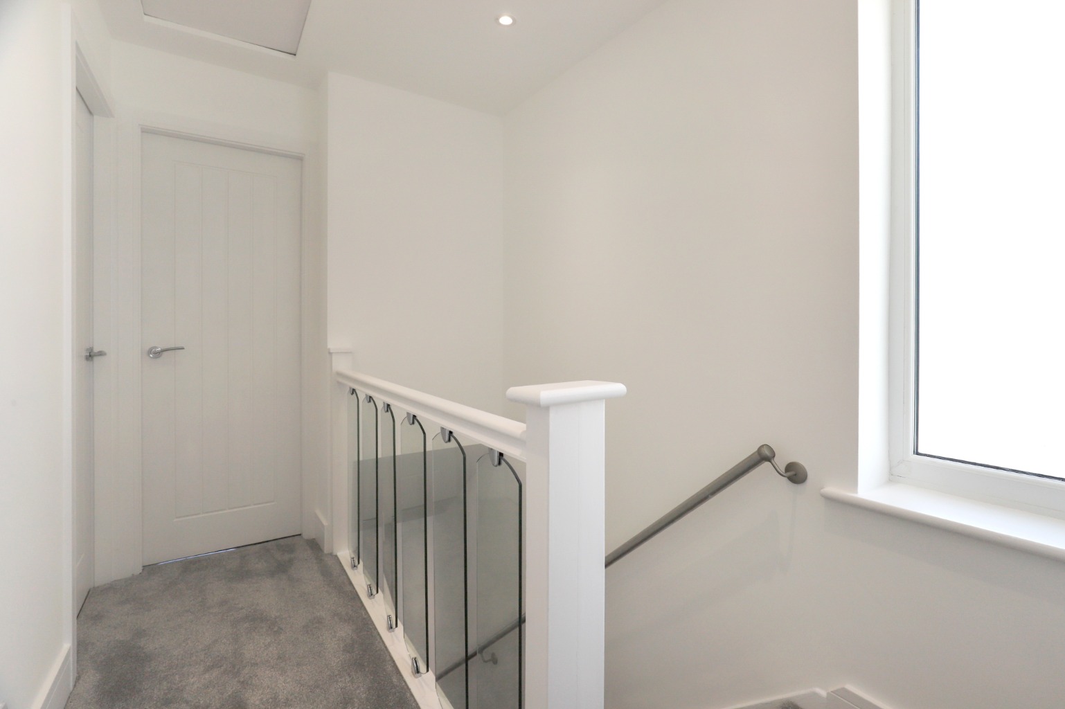 Ascending the stairs, you'll appreciate the elegant touch of lovely glass balustrades, adding to the property's refined feel. The first floor hosts three well-proportioned bedrooms. The master bedroom benefits from a private en-suite, offering a luxurious retreat. The third bedroom includes a convenient built-in wardrobe, maximising space and storage. A contemporary family bathroom serves the remaining bedrooms, featuring a bath with an overhead shower, catering to all family needs.